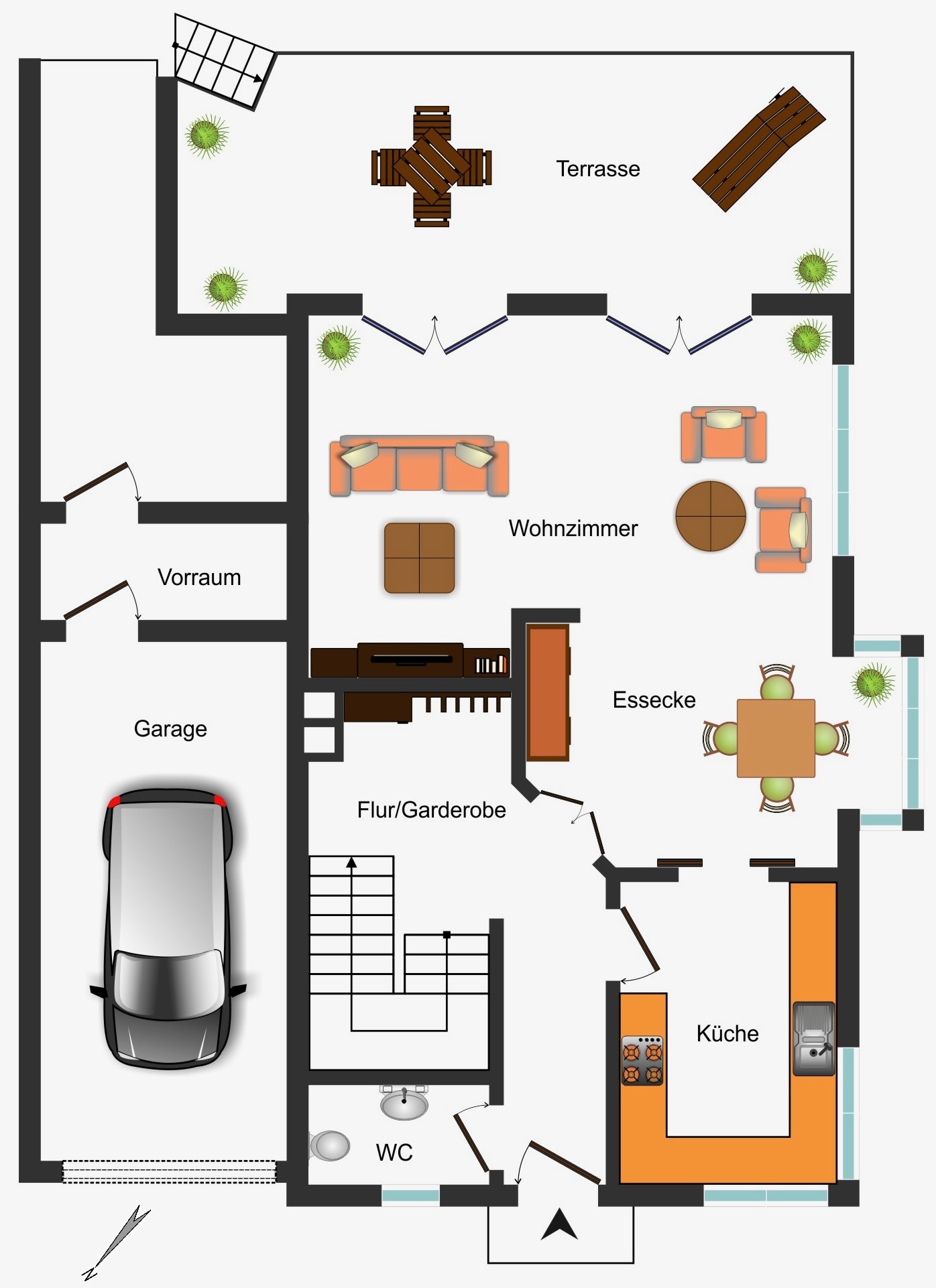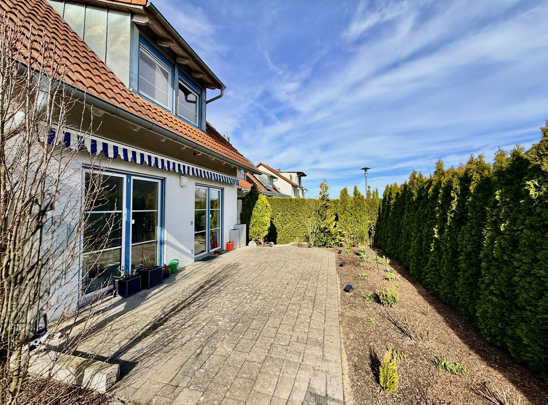 - Garten uneinsehbar, ein Weg mit separatem Gartentor führt zur Rückseite des Abstellraumes an der Garage