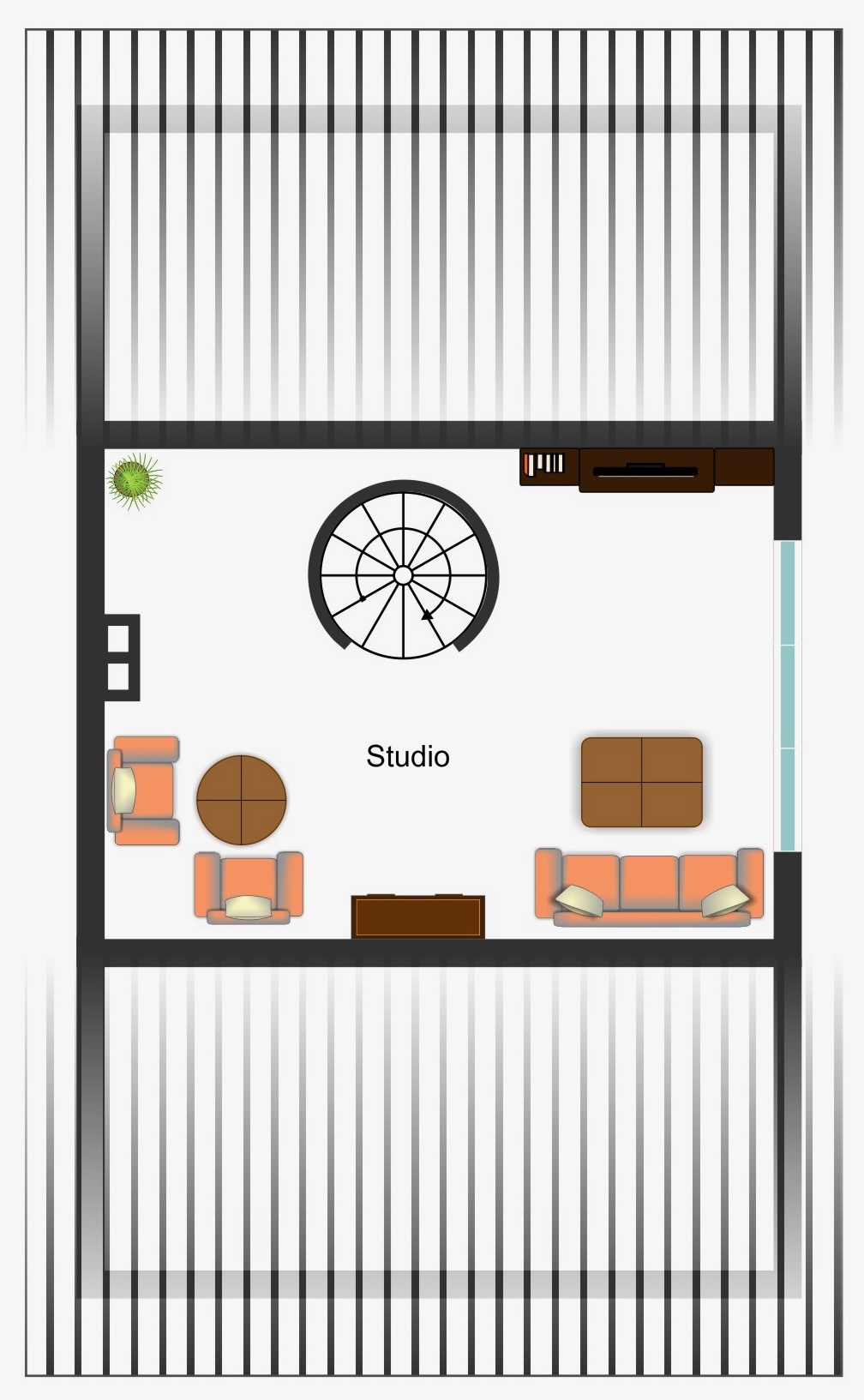 - das Studio hat eine Deckenhöhe von ca. 2,80 m, Kniestock ca. 1,18 m